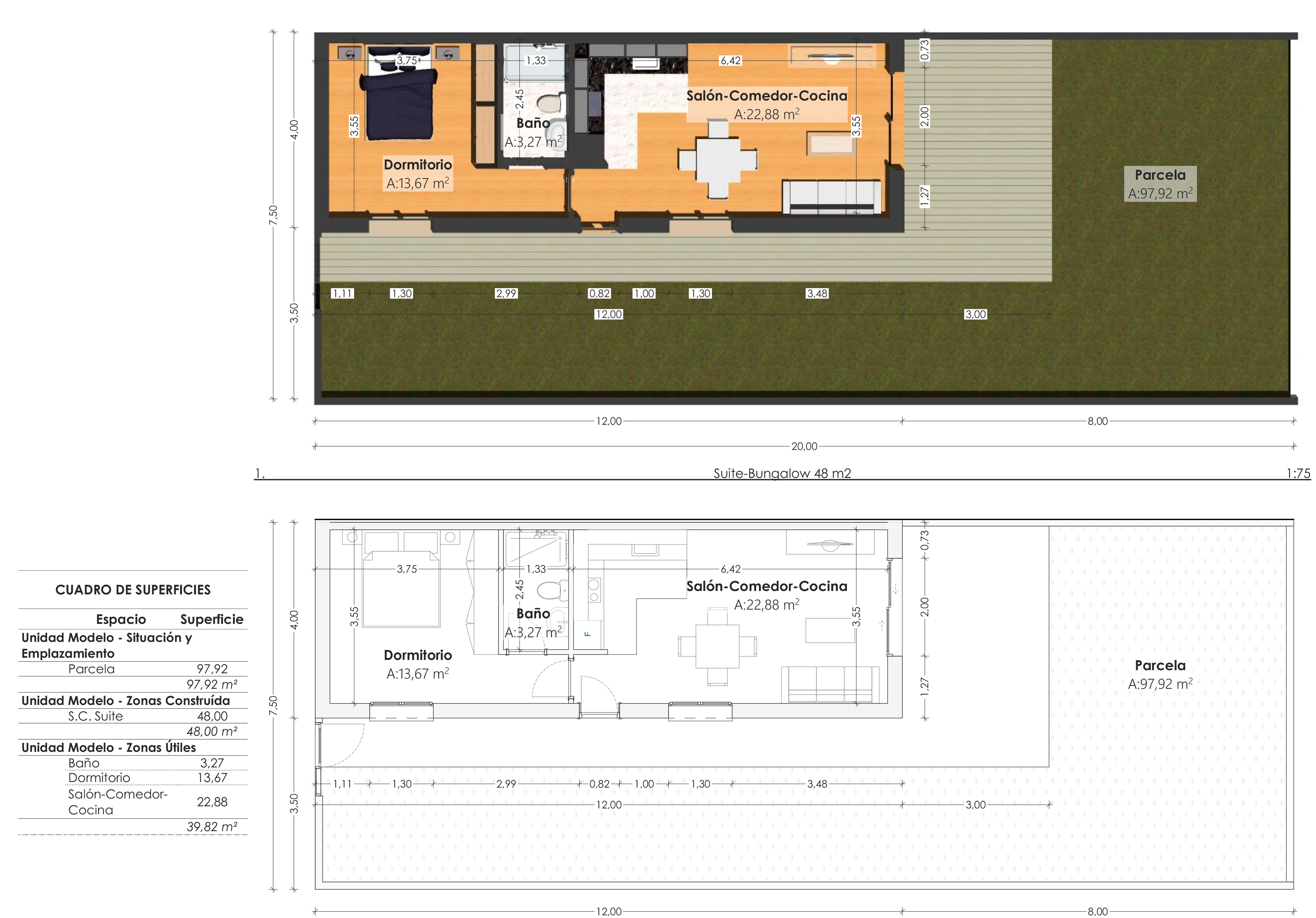 180 Bungalows hoteleros / suites ( 70 % de una habitación y 30% de dos habitaciones ) y 35 suites en régimen hotelero para inversores
