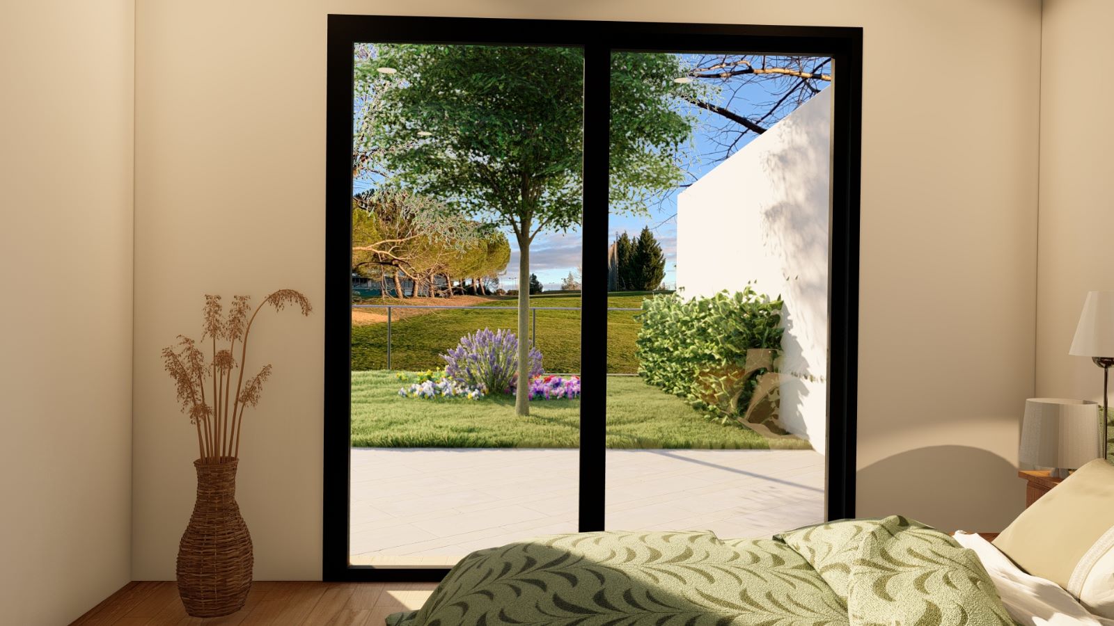 Las paredes son de 29cm y los cristales de triple cristal con gas Argón, 4-16-4-16-4. Persianas motorizadas en todas las ventanas. y certificados europeos ISO 9001 e ISO 45001.